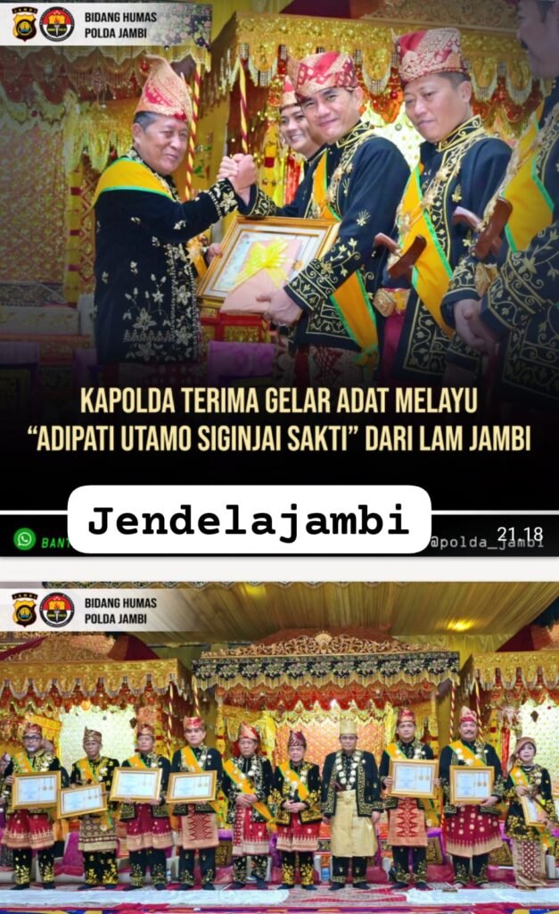 Kapolda Jambi, Irjen Pol. Krisno H. Siregar, resmi menerima gelar adat Melayu Jambi jendelajambi.net-Kota jambi“Adipati Utamo Siginjai Sakti” yang dianugerahkan…