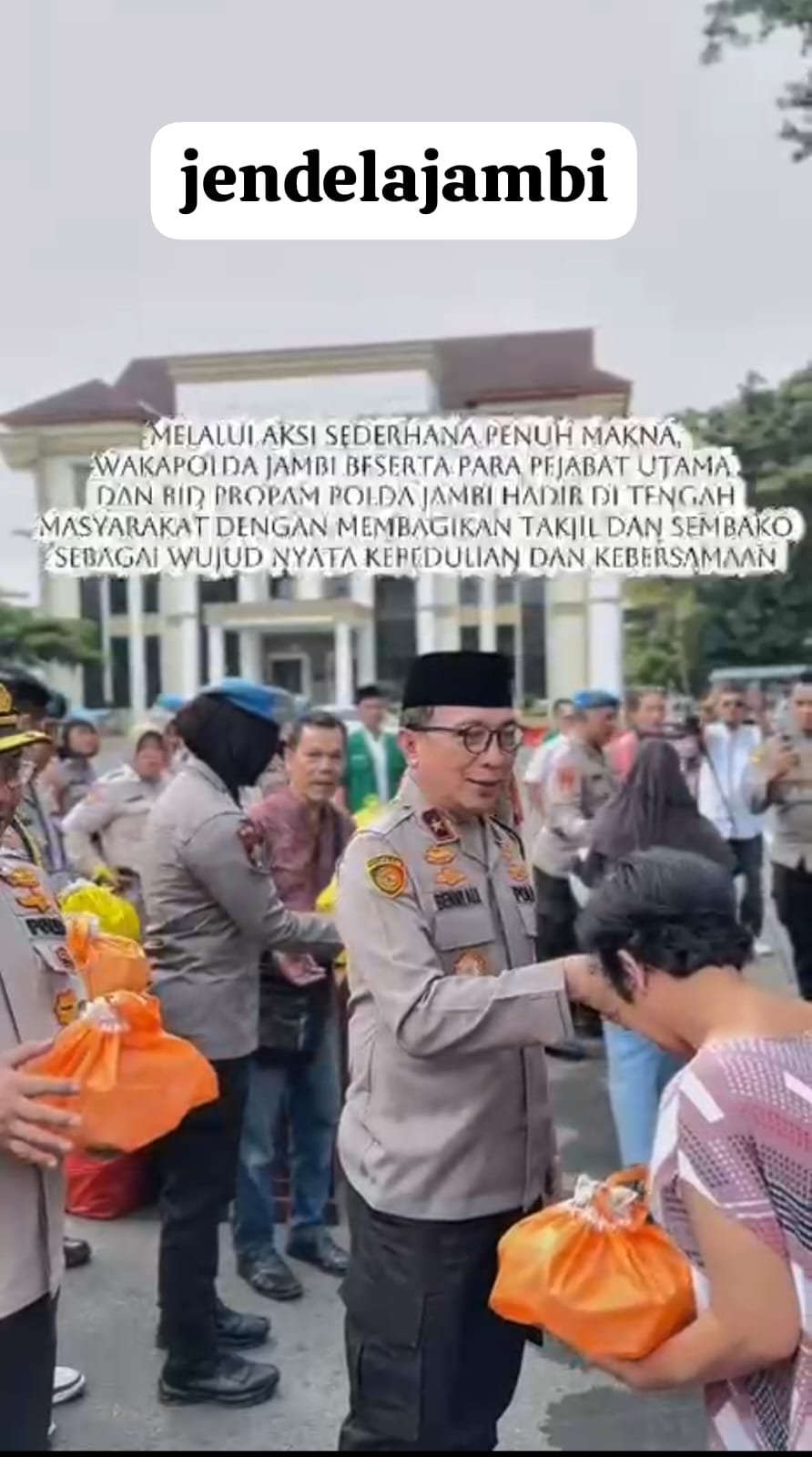“Melalui kegiatan ini, kami ingin menegaskan bahwa Polda Jambi tidak hanya berperan dalam menjaga situasi kamtibmas tetap aman dan kondusif, tetapi juga hadir untuk berbagi dan memperkuat nilai-nilai kemanusiaan serta kebersamaan di tengah masyarakat, khususnya di bulan suci Ramadan,” ujar Kombes Pol. Erlan Munaji.